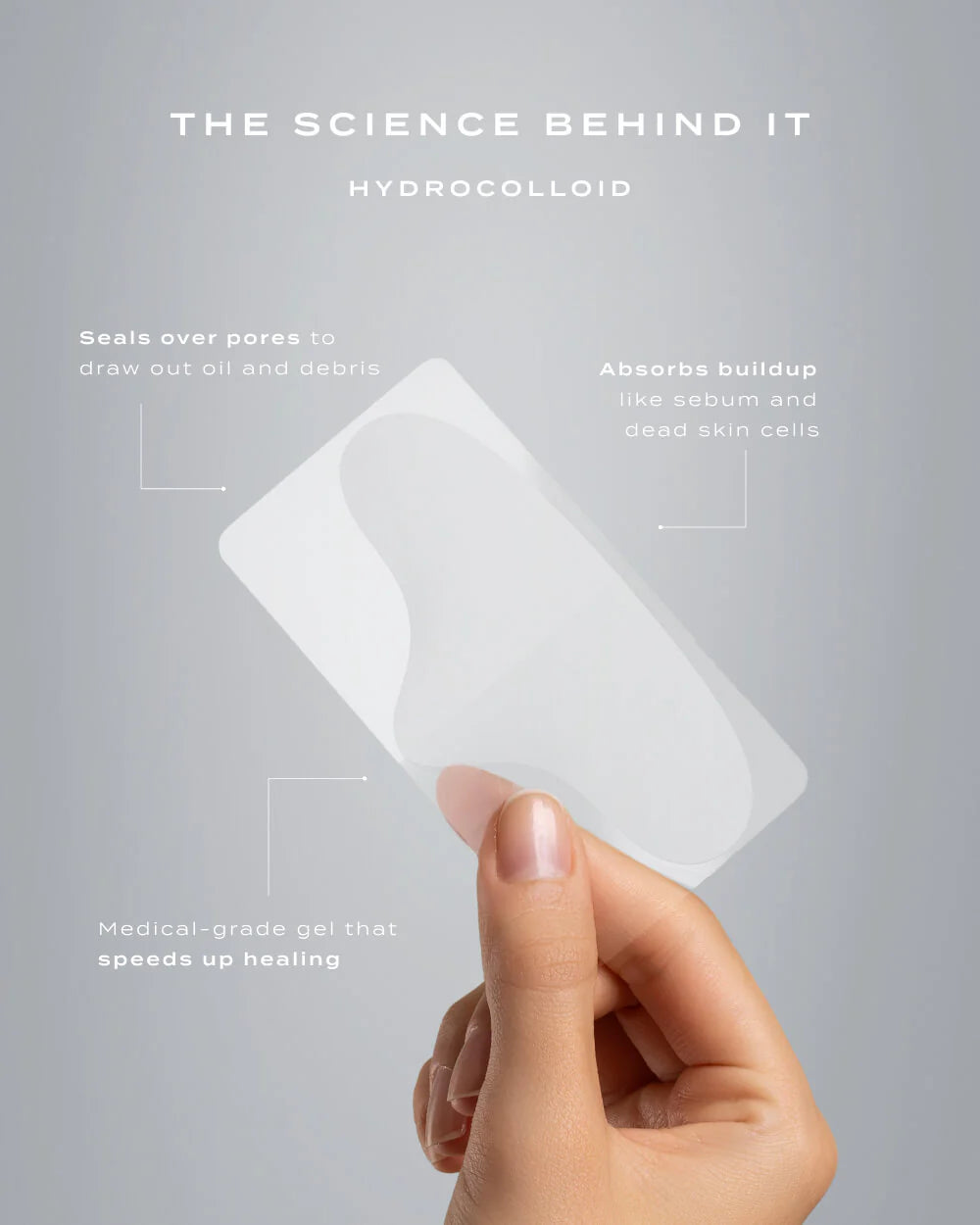 Hydrocolloid absorbs excess oil gently, without damage. This helps the skin stay balanced over time and breaks that cycle.